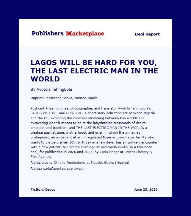 The unnamed protagonist, an inpatient at an unregulated Nigerian psychiatric facility, wants to die before her 50th birthday in a few days. She has an unlikely encounter with a new patient, and what is left is a treatise against time, motherhood, and grief.